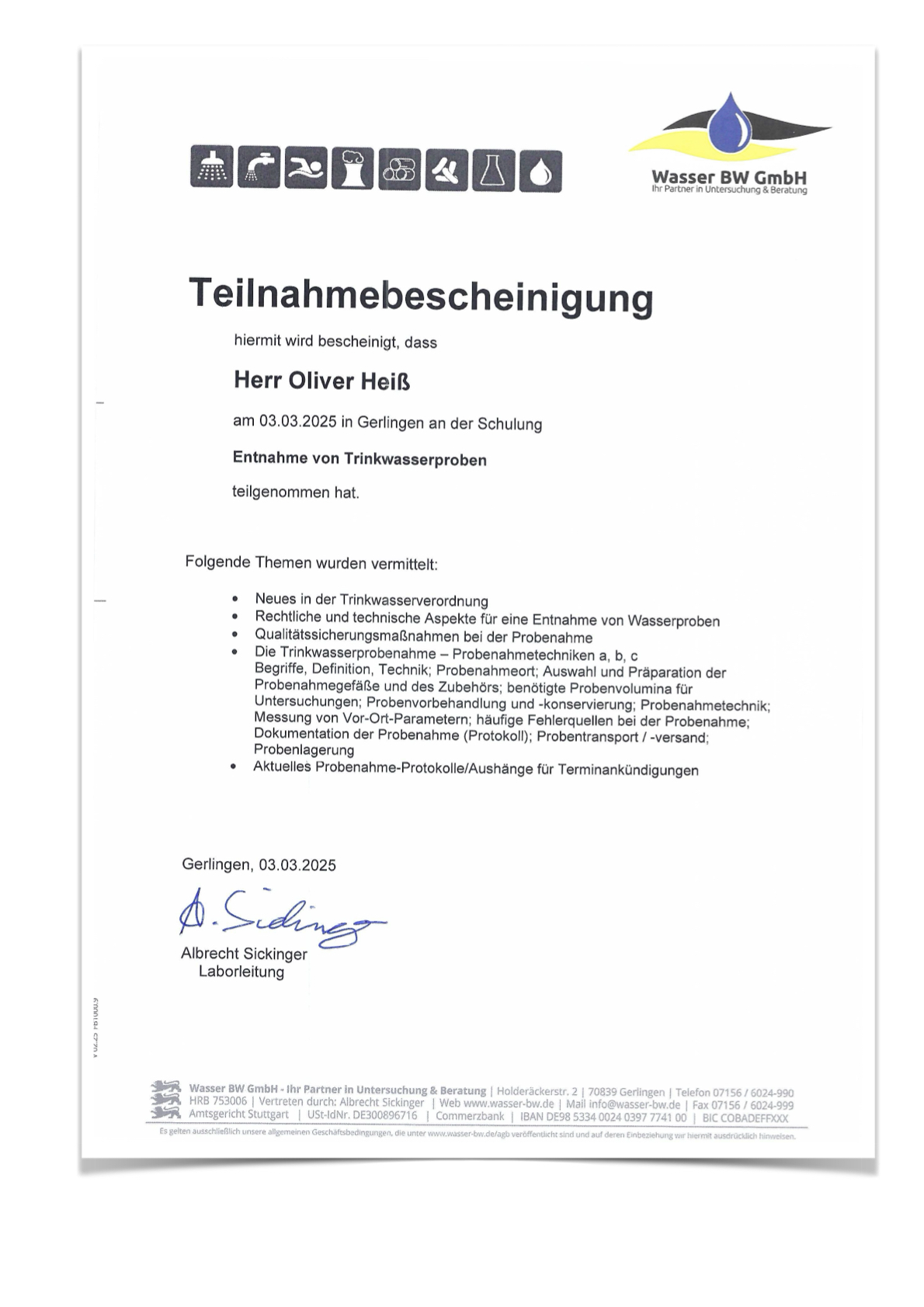 Die DIN EN ISO 17025 regelt „Allgemeine Anforderungen an die Kompetenz von Prüf- und Kalibrierlaboratorien“. Nach TrinkwV (§ 15 Abs. 4) muss ein Labor, das Trinkwasser untersuchen möchte, für die Verwendung Untersuchungsverfahren einschließlich der Probenahme bei einer nationalen Akkreditierungsstelle eines Mitgliedsstaats der Europäischen Union akkreditiert sein.